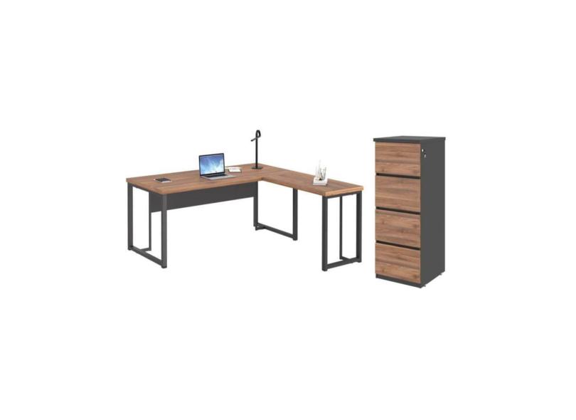 O menor preço encontrado no Brasil para Escrivaninha em L com Arquivo com 4 Gavetas Aruba Noce Preto atualmente é R$ 2.238,04.