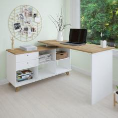 O menor preço encontrado no Brasil para Escrivaninha em L Retrô para Escritório Gold com Gaveteiro 2 Gavetas Artany Olmo/Branco atualmente é R$ 937,28.