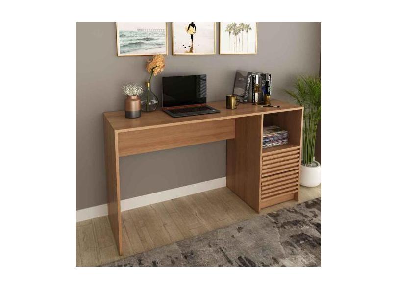 Escrivaninha Home Office com acabamento ripado e gaveteiro 1,36m ME417