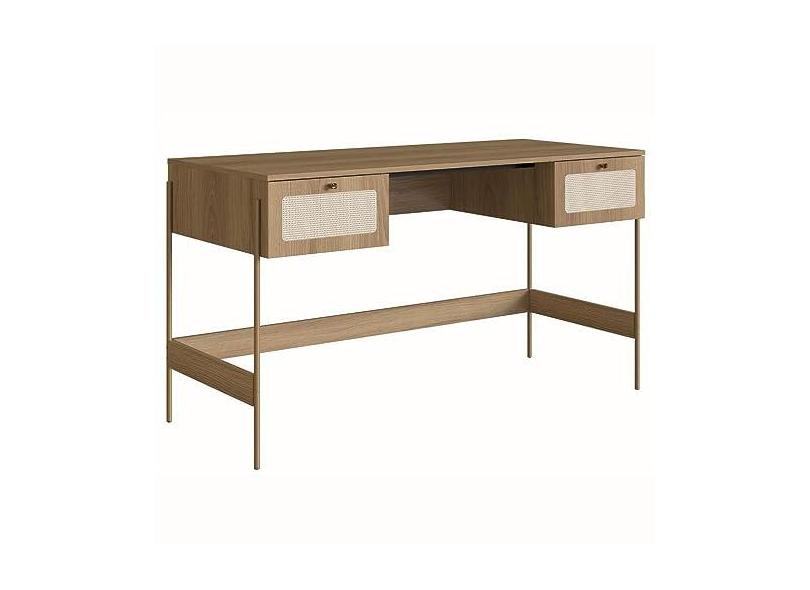 Escrivaninha Oslo Artesano 139 cm (largura) em Mdp Palha Natural Cor Mel Base Metal
