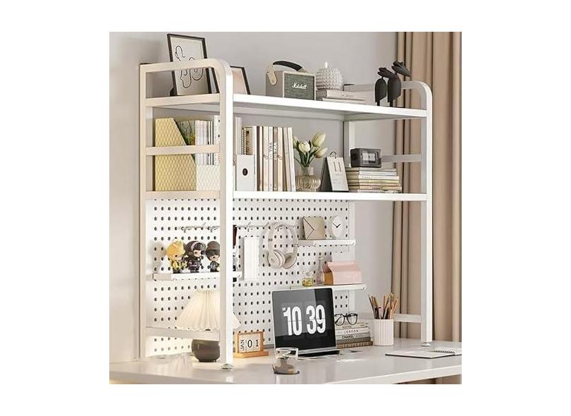 Estante de mesa de 2/3 camadas, estante de mesa de metal para mesa de computador, prateleira de mesa de escritório com placa perfurada, prateleira de exibição de bancada para mesa de computador,