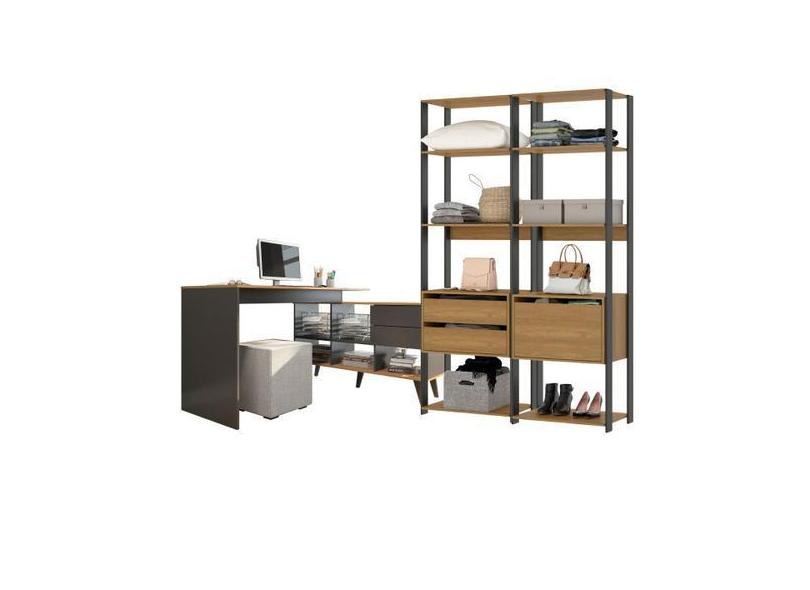Kit Home Office Mesa Escrivaninha Estante Modular 3 Peças Mdp Cinza 07