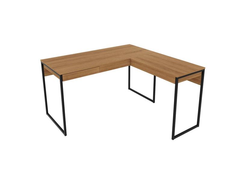Mesa Angular para Escritório Home Office ME4157 MDP Amendoa/Preto - Gran Belo