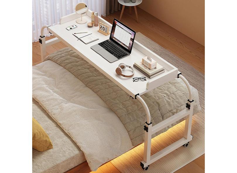 Mesa de cabeceira móvel com rodas, altura ajustável 65-95 cm Mesa de computador em pé Estação de trabalho Bandeja de comida Mesa médica rolante para estrutura de cama dupla/completa/queen/ki