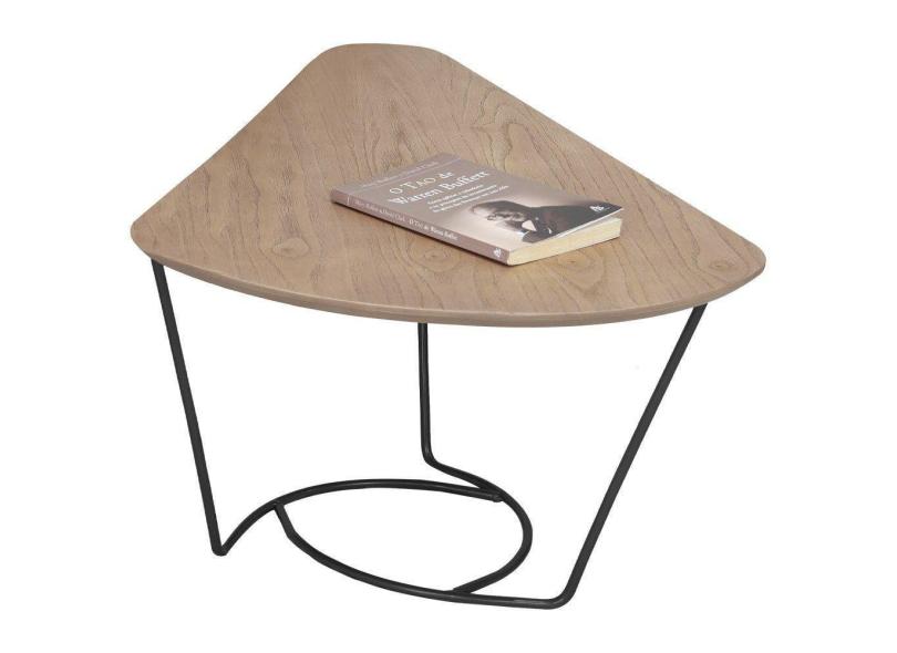 Mesa De Centro Gota Madeira Amendoa Base Metal Preto Nacc