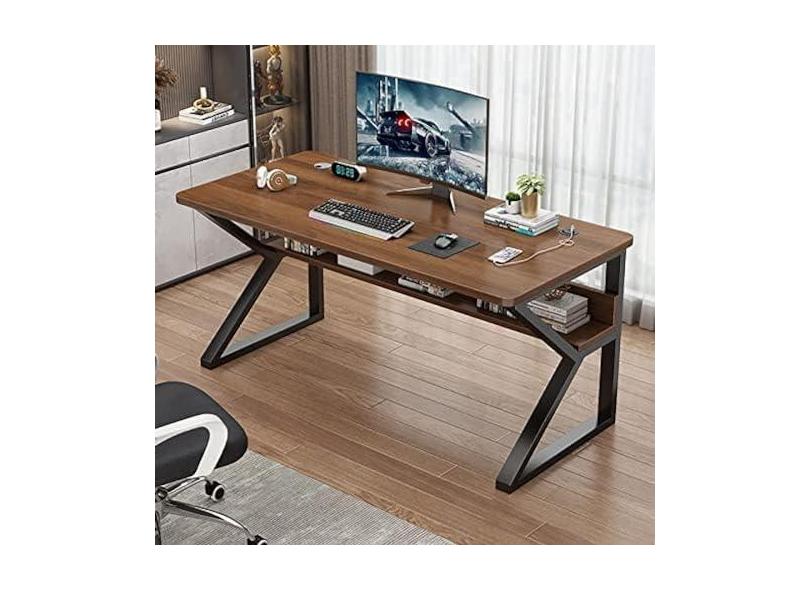 Mesa de computador em formato de K, escrivaninha ergonômica para estudo, estação de trabalho para home office, mesa para pc, mesa de jogos com portas USB e gerenciamento de cabos, nogueira,