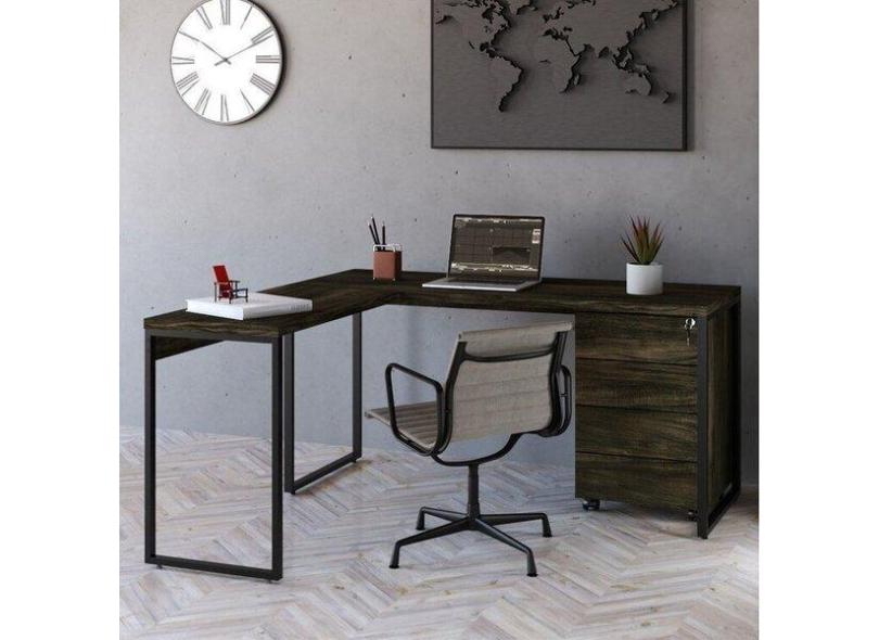 Mesa De Escrit rio Em L Estilo Industrial 150x150cm Com Gavet