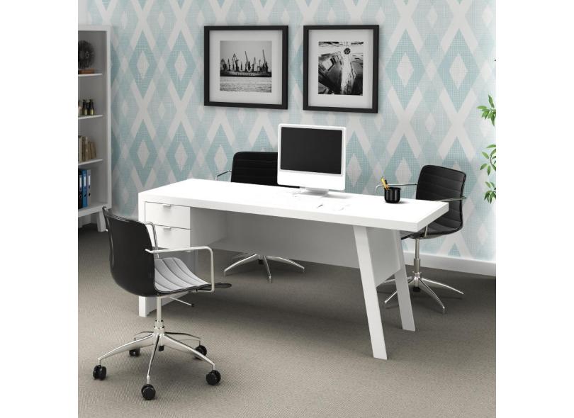 Mesa De Escritório 1,63M Com 2 Gavetas Tecno Mobili Branco/Branco