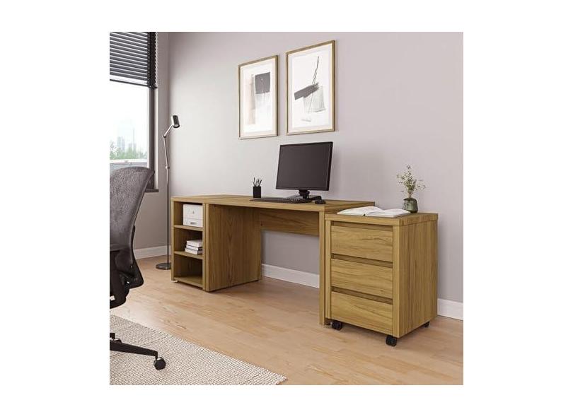 O menor preço encontrado no Brasil para Mesa de Escritório 120cm com Gaveteiro com Rodízio e Prateleiras Ficus Cabecasa Madeiramadeira Rovere atualmente é R$ 2.346,65.