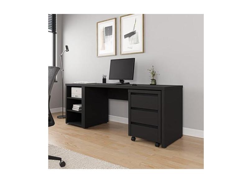 O menor preço encontrado no Brasil para Mesa de Escritório 150cm com Gaveteiro com Rodízio e Prateleiras Ficus Cabecasa Madeiramadeira Preto atualmente é R$ 2.291,85.