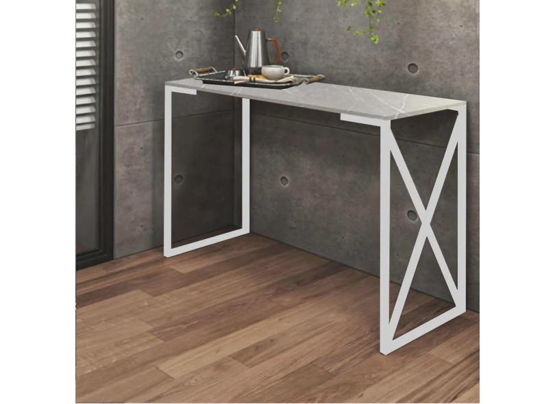 Mesa De Escritório Computador 90cm Bex Industrial Ferro Branco mdf Marmorizado Cinza - Ahz Móveis