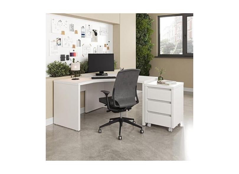 Mesa de Escritório em L 135cm com Gaveteiro com Rodízio Ficus Cabecasa Madeiramadeira Branco
