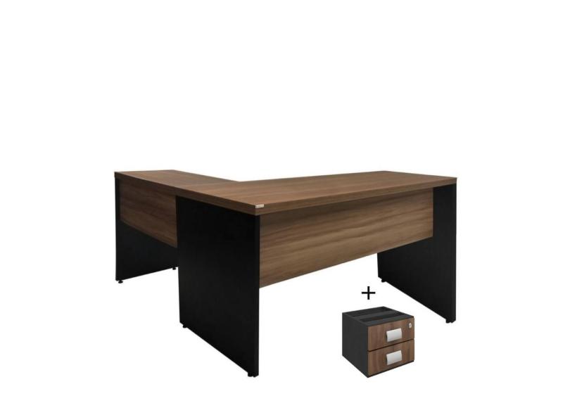 Mesa de escritório em L cor Nature/Preto (Mesa reta 170 cm + Mesa auxiliar) 0,731,700,70 c/ 02 gaveta