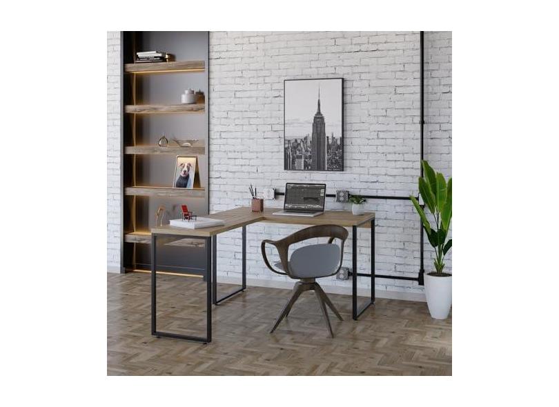 O menor preço encontrado no Brasil para Mesa de Escritório em L Estilo Industrial 120x150cm Kuadra Lâmina Mel/Est.Preta atualmente é R$ 434,43.