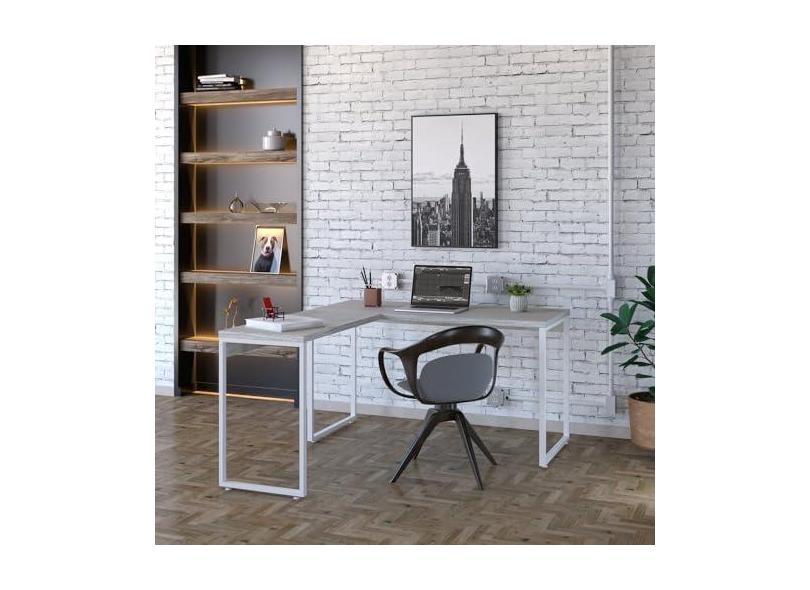 O menor preço encontrado no Brasil para Mesa de Escritório em L Estilo Industrial 135x150cm Kuadra Snow/Est.Branca atualmente é R$ 491,10.
