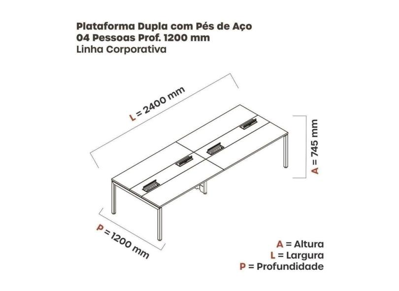 Mesa de Plataforma dupla para 4 Pessoas Corporativa 120X120/4P PDC12/12/4P Escalate/Grafito