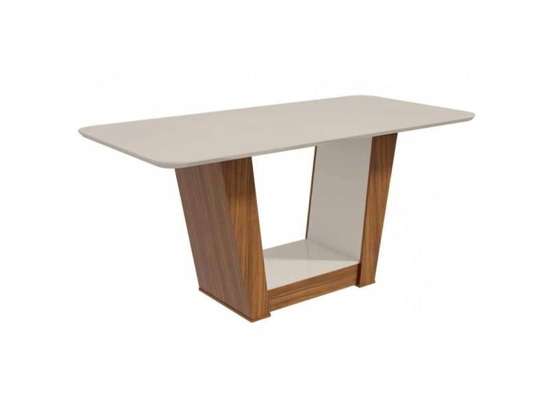 Mesa de Sala Jantar Apogeu Plus c/Tampo Madeirado Vidro 170x90cm Rovere/Amêndoa/Off White - Lopas