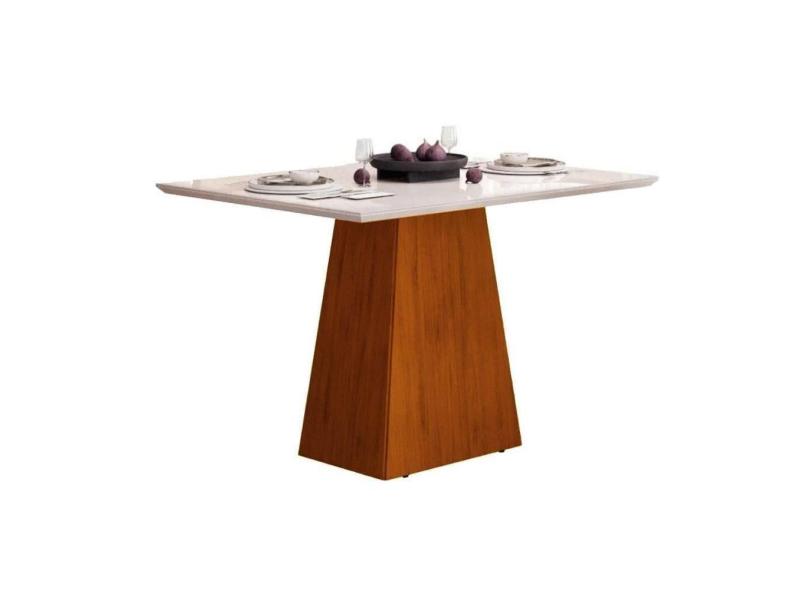 Mesa De Sala Jantar Dulce C- Tampo Madeirado Vidro Reto 120x90cm Cedro-off White - Dj Móveis