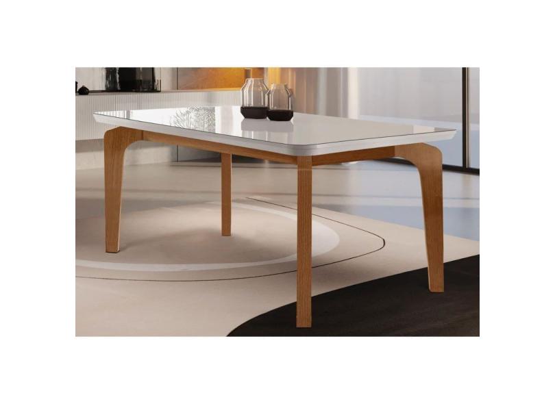 Mesa De Sala Jantar Londrina + Tampo Madeirado Vidro Curvo 180x90cm Off White/imbuia-vidro Off White