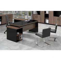 Mesa Diretor Web40 c/ Vidro 1,72m + Gaveteiro Preto / Ameixa