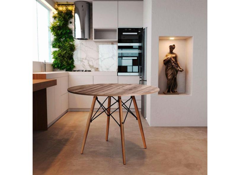 Mesa Eiffel Wood Tampo Redonda De Madeira 90 Cm Amêndoa New Green - Marrom