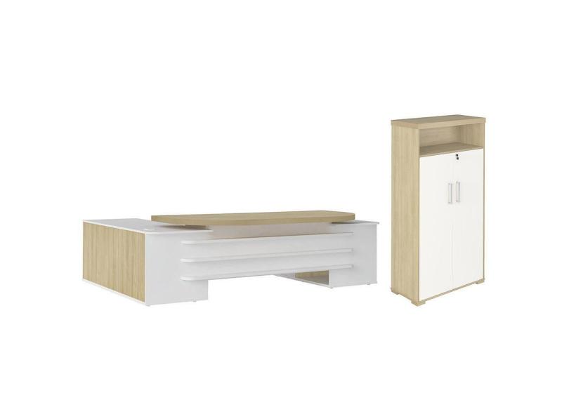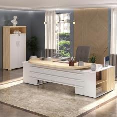 Mesa Escritório Presidente E Armário Alto 2 Portas Corp A06 Carvalho-branco - Mpozenato