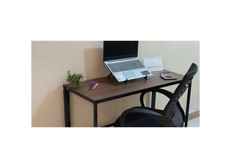 Mesa Escrivaninha 100 X 45 Samstec Madeira Mogno Mdf E Aço Para Computador Estudo Home Office E Quarto