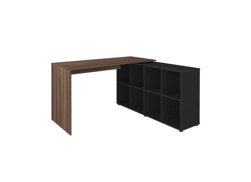 Mesa Escrivaninha em L 140x130cm 8 Nichos Eron A06 Ipê/Preto - Mpozena