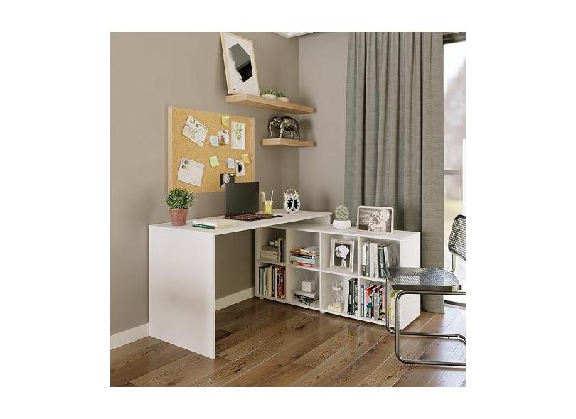 Mesa Escrivaninha em L 8 Nichos Barcelona Branco