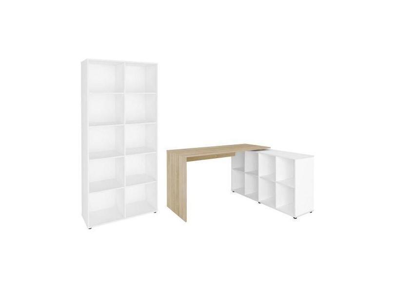 Mesa Escrivaninha Em L Eron E Estante Livreiro 90x187cm Lean A06 Branc
