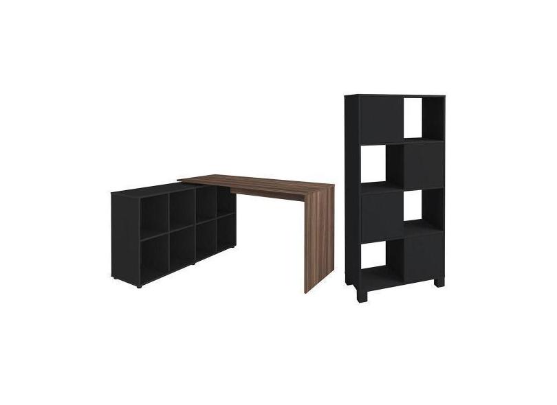 Mesa Escrivaninha Em L Eron E Estante Livreiro Maly A06 Ipê/preto - Mp