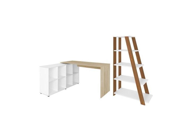 Mesa Escrivaninha em L Eron e Estante Livreiro Stela A06 Branco/Carval