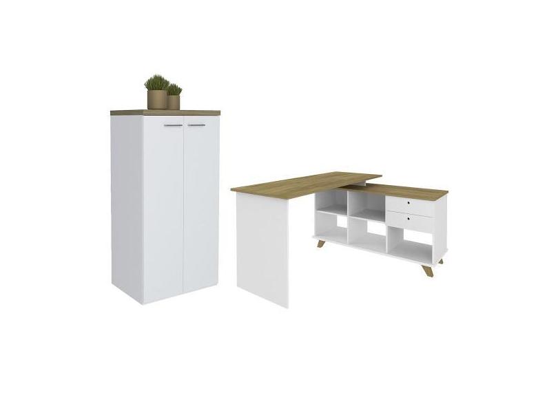 Mesa Escrivaninha em L Golden e Armário Alto 2 Portas Tok A06 Olmo/Bra