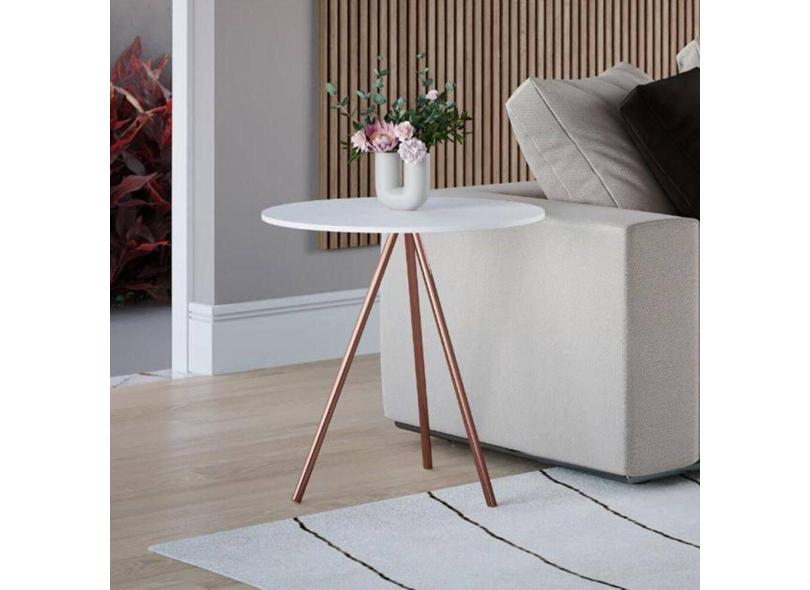 Mesa Lateral Eames Gabriela Tampo Madeira Branco Pés Cobre