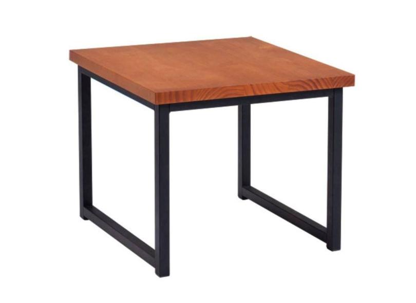 Mesa Lateral Quadrada Atlanta Industrial Daf Móveis 50 Cm Madeira Maciça Base Aço Carbono Preto