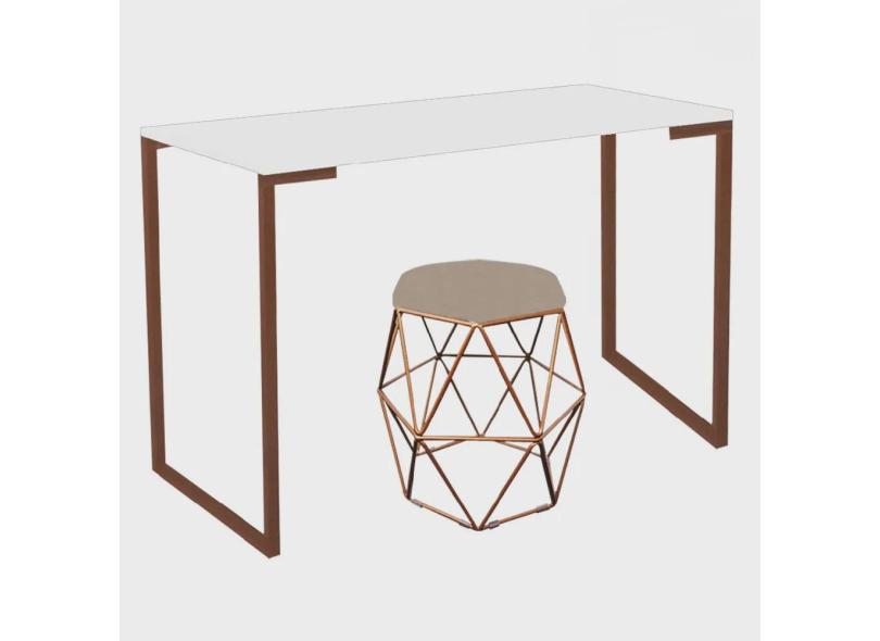 Mesa Ley Industrial Escritório e Home Office com Puff Luna Suede Bege Bronze Tampo Branco - Ahz Móveis