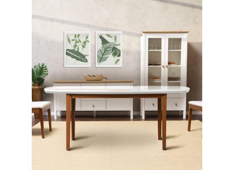 Mesa Oval 6 Lugares 1,6m Tampo Vidro e MDF Tiê CabeCasa MadeiraMadeira Amêndoa/Off White