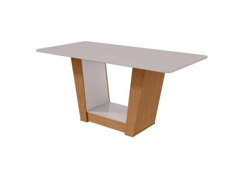 Mesa p/ Cozinha Apogeu Plus c/ Tampo Madeirado Vidro 170x90cm Amêndoa/Off White - Lopas