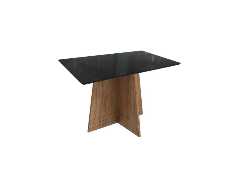 Mesa p/ Cozinha Lótus c/ Tampo Madeirado c/ Vidro 90x160cm Nogueira/Preto fosco/Vidro preto - Kappesberg