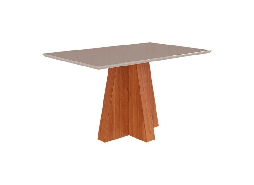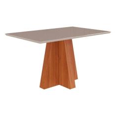 Mesa p/ Cozinha Patricia c/ Tampo Madeirado c/ Vidro 130X80cm Cinamomo/Off White - Cimol
