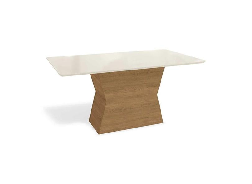 Mesa p/ Cozinha Tilia c/ Tampo Madeirado c/ Vidro 160x90cm Freijó/Off White - Kappesberg