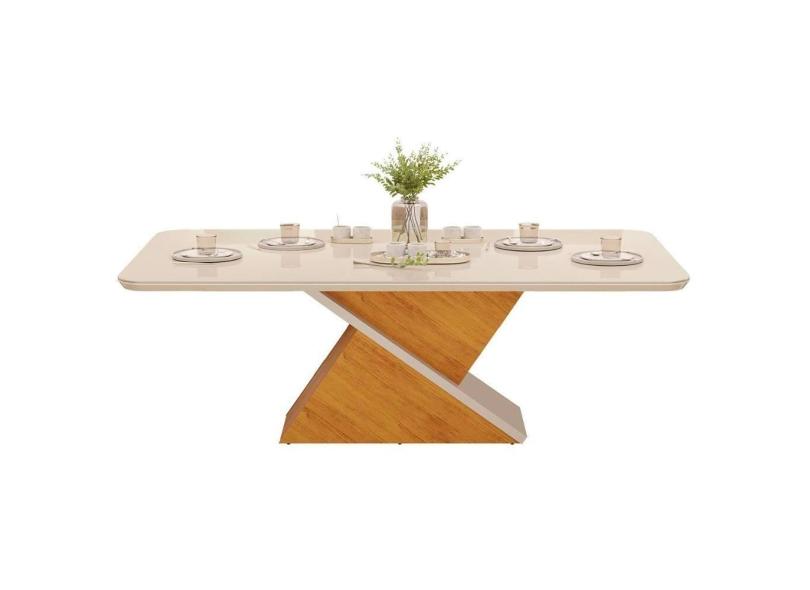 O menor preço encontrado no Brasil para Mesa p/ Cozinha Zafira c/ Tampo Madeirado c/ Vidro Curvo 200x100cm Cedro/Off White - DJ Móveis atualmente é R$ 1.582,17.