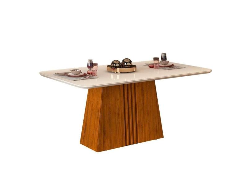 Mesa para Cozinha Italia + Tampo Madeirado Vidro 170x90cm Freijó/Off White - DJ Móveis