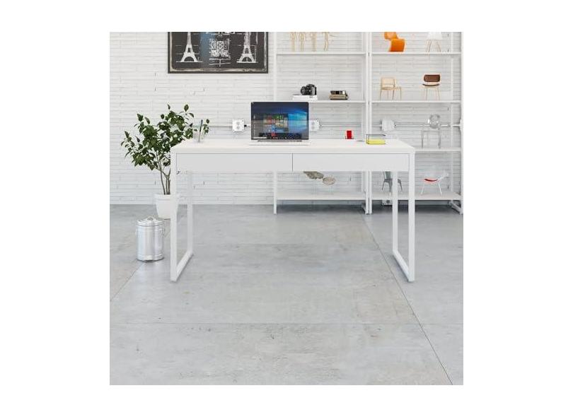 Mesa para Escritório 135cm 2 Gavetas Kuadra Branco Chess/Est.Branca