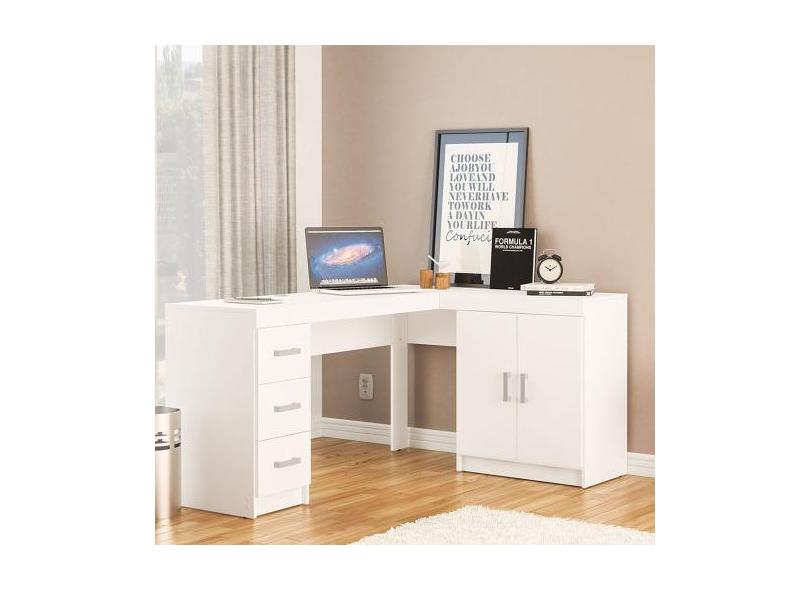 Mesa para Escritório Espanha 2 Portas 3 Gavetas Branco - Politorno, 0,