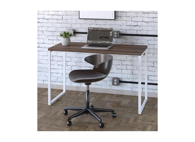 Mesa para Escritório Office Estilo Industrial 120cm Kuadra Nogal/Est.Branca