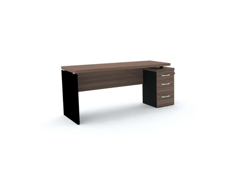 Mesa Pé Painel Com Gaveteiro 3 Gavetas Pe40 Em Mdp 164 X 60 Cm Walnut Base Preta