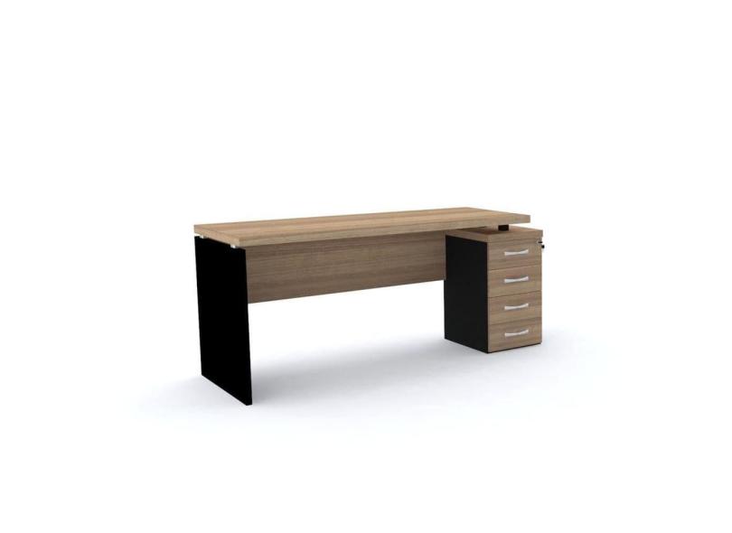 Mesa Pé Painel Com Gaveteiro 4 Gavetas Pe40 Em Mdp 164 X 60 Cm Noce Naturalle Base Preta