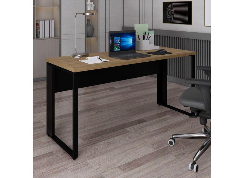 Mesa Retangular Pé Metálico 1500mm . AMADEIRADO CLARO/PRETO