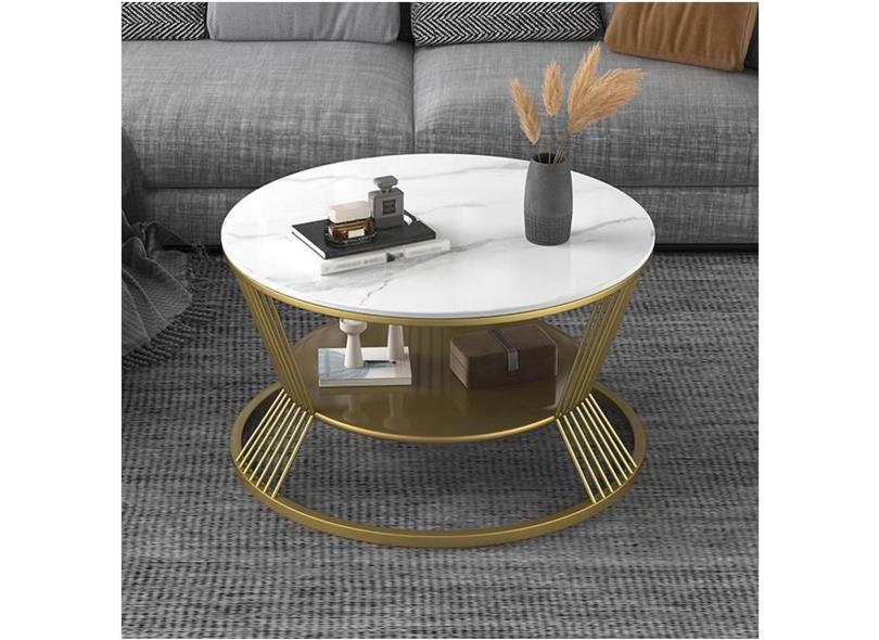 Mesas de centro redondas para espaços pequenos, mesa de centro decorativa moderna com estrutura de metal resistente, mesa de centro branca para sala de estar, hall de hóspedes, escritório, p